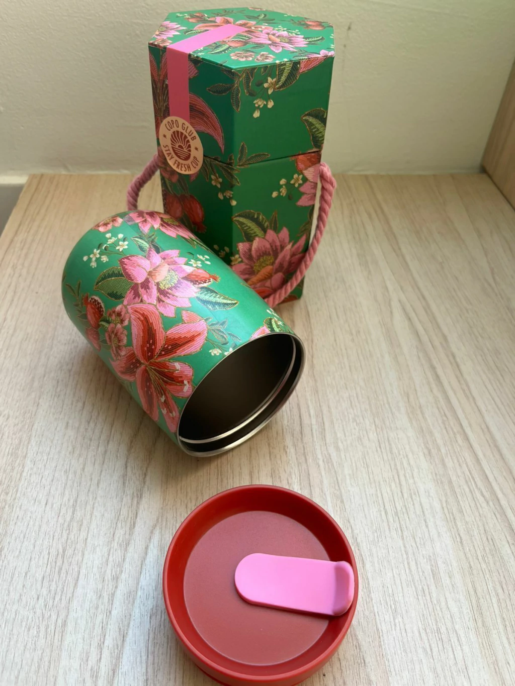 - Em aço inoxidável estampado e Tritan