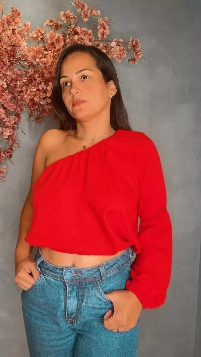 CROPPED OMBRO SÓ DE MANGA LONGA PUNHO LATEX
