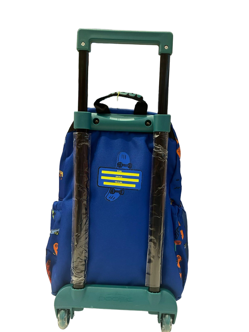 Mala Carrinho infantil está linda com os desenhos coloridos da estampa Flop, ela possui fechos por zíper, puxador para carrinho, bolso externo frontal e nas laterais ideal para armazenar a garrafinha.