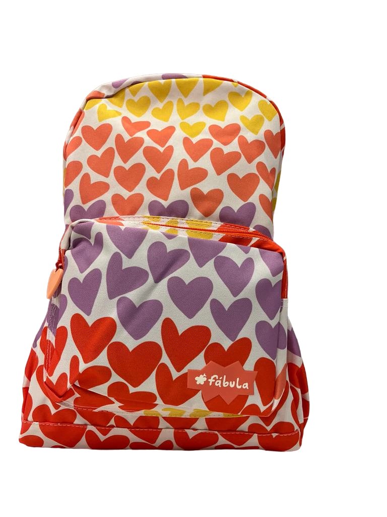 Coleção confeccionada em poliester com estampa corrida. Logo em silk puff, puxadores de zíper personalizados de plástico rígido e de metal colorido, alça de gorgurão estampado com zum zum e forro personalizado. Poliéster, forro, alças e zíper confeccionados com material reciclado.